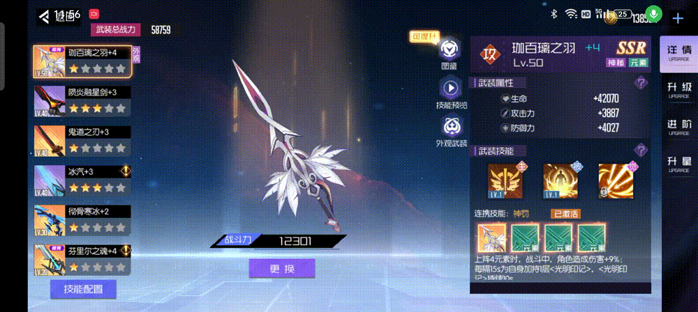 游戏最有特点的一个玩法就是武器玩法,谁说格斗游戏只有莽,在这个游戏的武器玩法上我们也需要搭配才行,通过不断的提升等级角色可以搭配最多六个武器一同上阵,我们只需要一把输出的武器,其他的武器都是辅助作用,每个武器都需要搭配相同属性的武器来激活额外效果,除了主输出武器之外其他武器都是来给主武器激活额外伤害效果的。