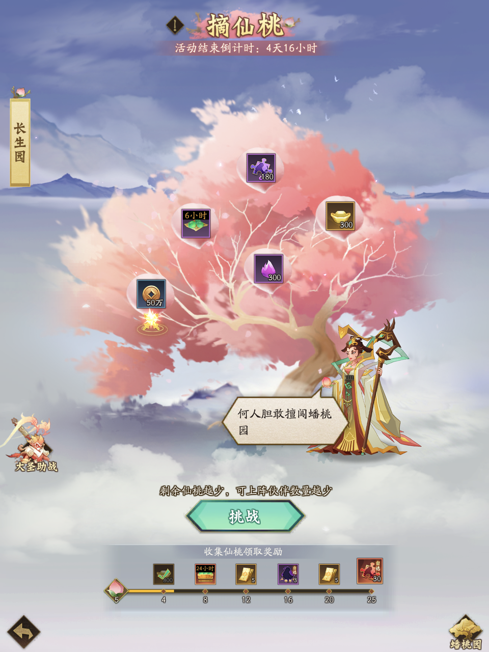 摘仙桃:经典玩法新生,摘桃得海量养成资源!活动时间:8月16日-8月22日