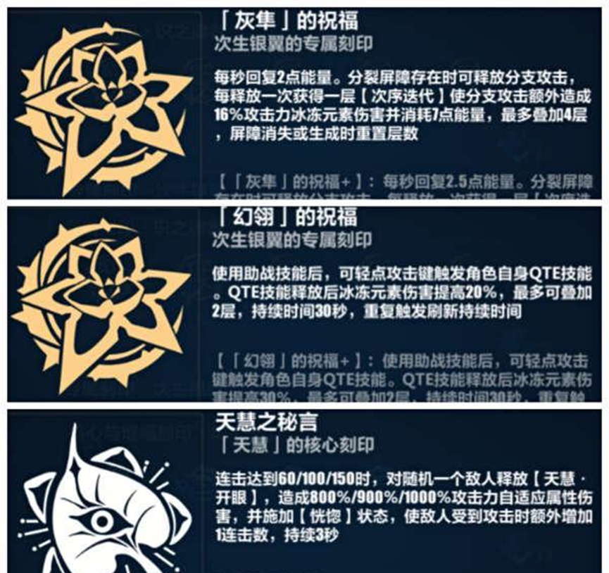 ①上述是天胡情况,如果没有天慧/浮生则可以选择黄金>刹那/救世(优先选择回复能量的刻印)