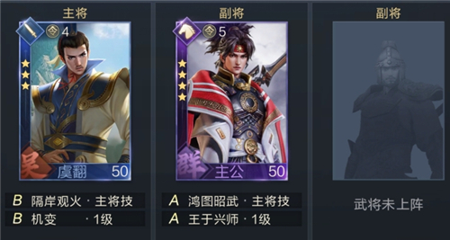 新手一开始在缺乏橙将的时候,如果有虞翻,可以将虞翻作为“焚烧队”的核心。虞翻的武技“隔岸观火”同样可以为敌军施加焚烧效果。玩家可以体验到“焚烧队”核心玩法“焚烧”的实战表现。