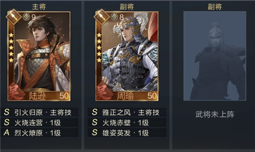 “焚烧队”拥有多种配合之间的选择,但最好的配合,还是选择橙将陆逊配合橙将周瑜。因为陆逊的主将技“引火归原”和独特武技“火烧连营”都能为敌军施加“焚烧”状态,这保证了周瑜武技“火烧赤壁”的发挥空间。