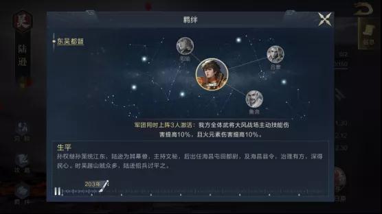 通过这样搭配,队伍会不再受后置技能触发几率限制,并且队伍本身拥有不低的输出下限。而在这个前提下,还可依靠周瑜和陆逊的武技来尝试打出更多输出,技能之间的搭配十分稳定。