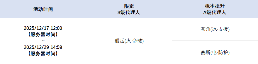 本期代理人与音擎调频活动时间为:2025/12/17 12:00 ~ 2025/12/29 14:59,包含如下内容: