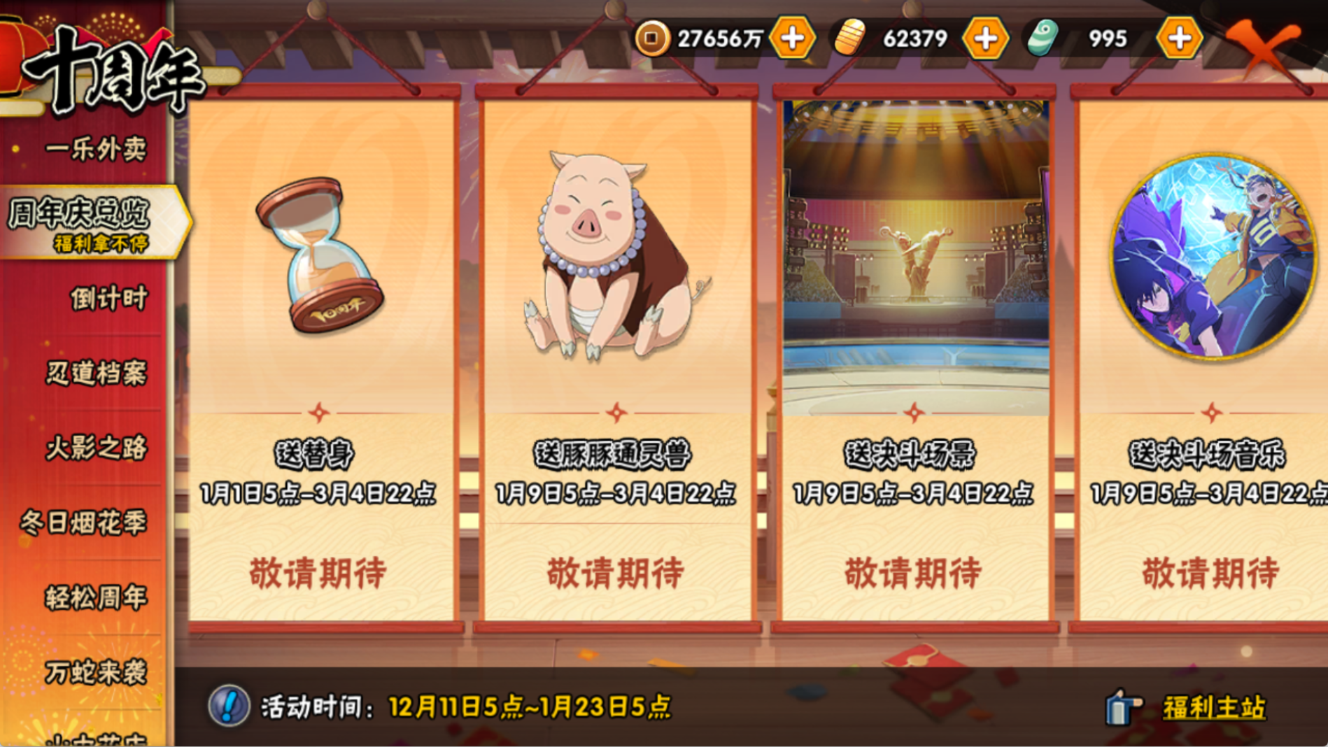 火影忍者手游十周年的活动到现在也基本全都确认了,后面的一些重点活动也都可以在更新后的总览中看到,现在期待后续有大招的观点也都消失了,因为按照现在的情况来看不太可能再有什么所谓的大招了。