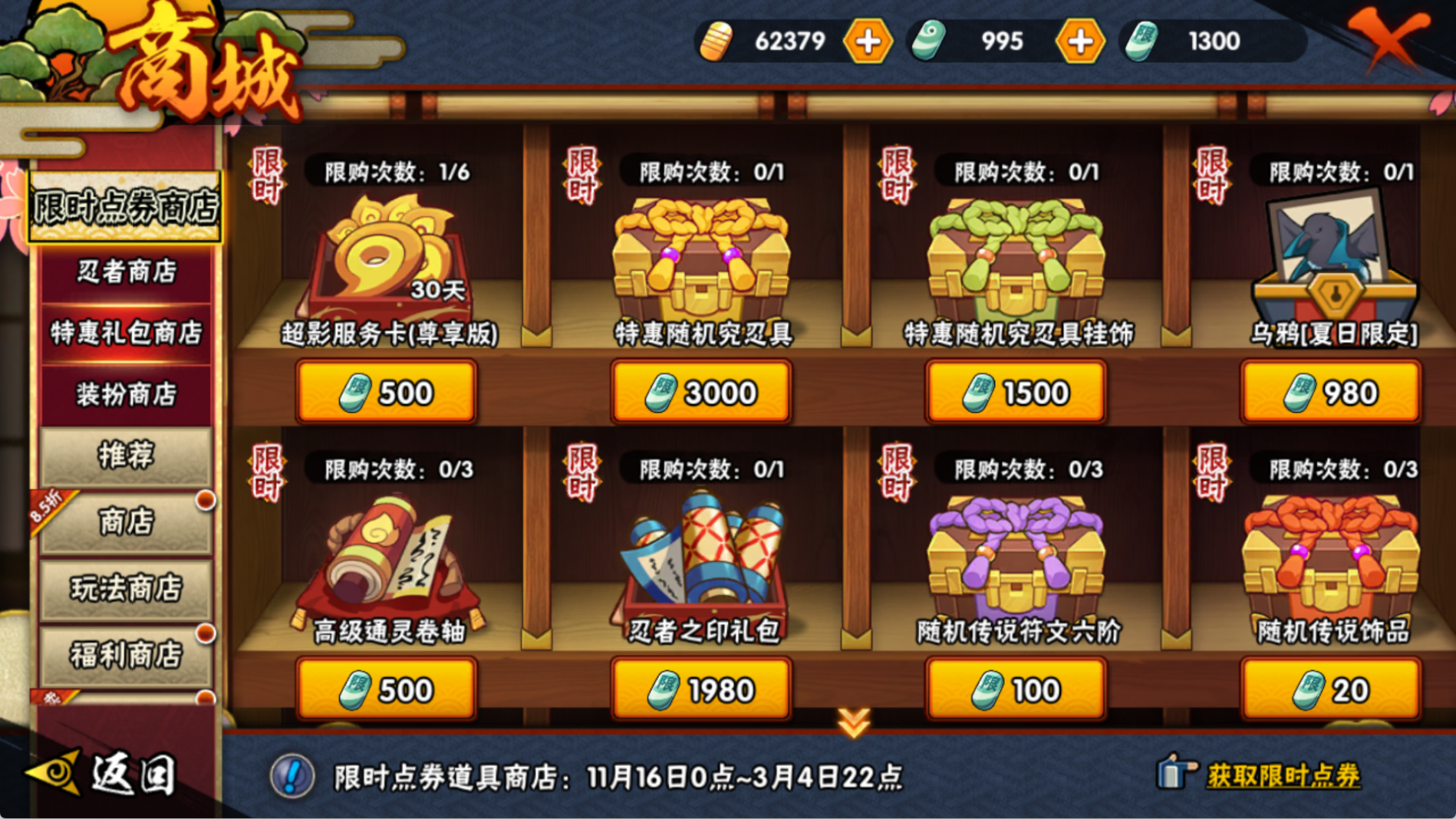 比如限时点券商店除了老忍者,还有新忍者妖怪奇谭纲手,不换忍者,也有超影服务等奖励,这样的多种奖励设定就能满足新老玩家的不同需求。