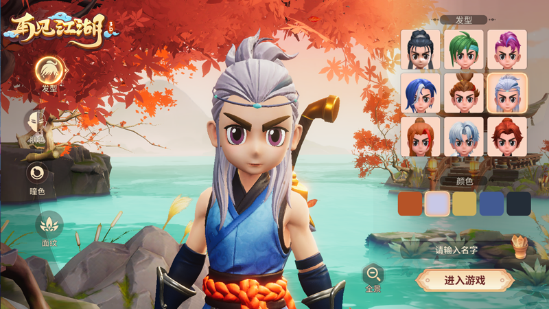 为满足玩家对角色个性化的需求,《再见江湖》在创角环节融和了捏脸系统,在保证角色样貌还原的情况下,让玩家可以通过自由选择发型发色、肤色、瞳孔以及面纹,捏出喜爱的角色形象。