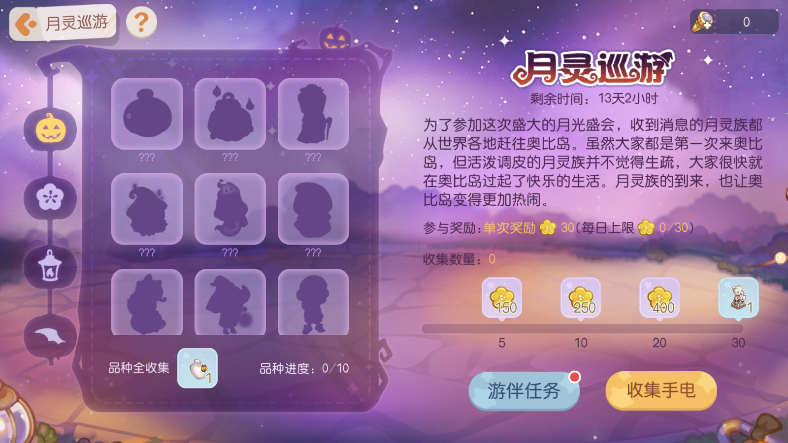 得知奥比岛要举办月灵盛宴,活泼调皮的月灵族们都从世界各地赶往向奥比岛,快来找找有多少种月灵吧!完成月灵图鉴的收集,还可以获得奖励「月灵巡游雕塑」哦!