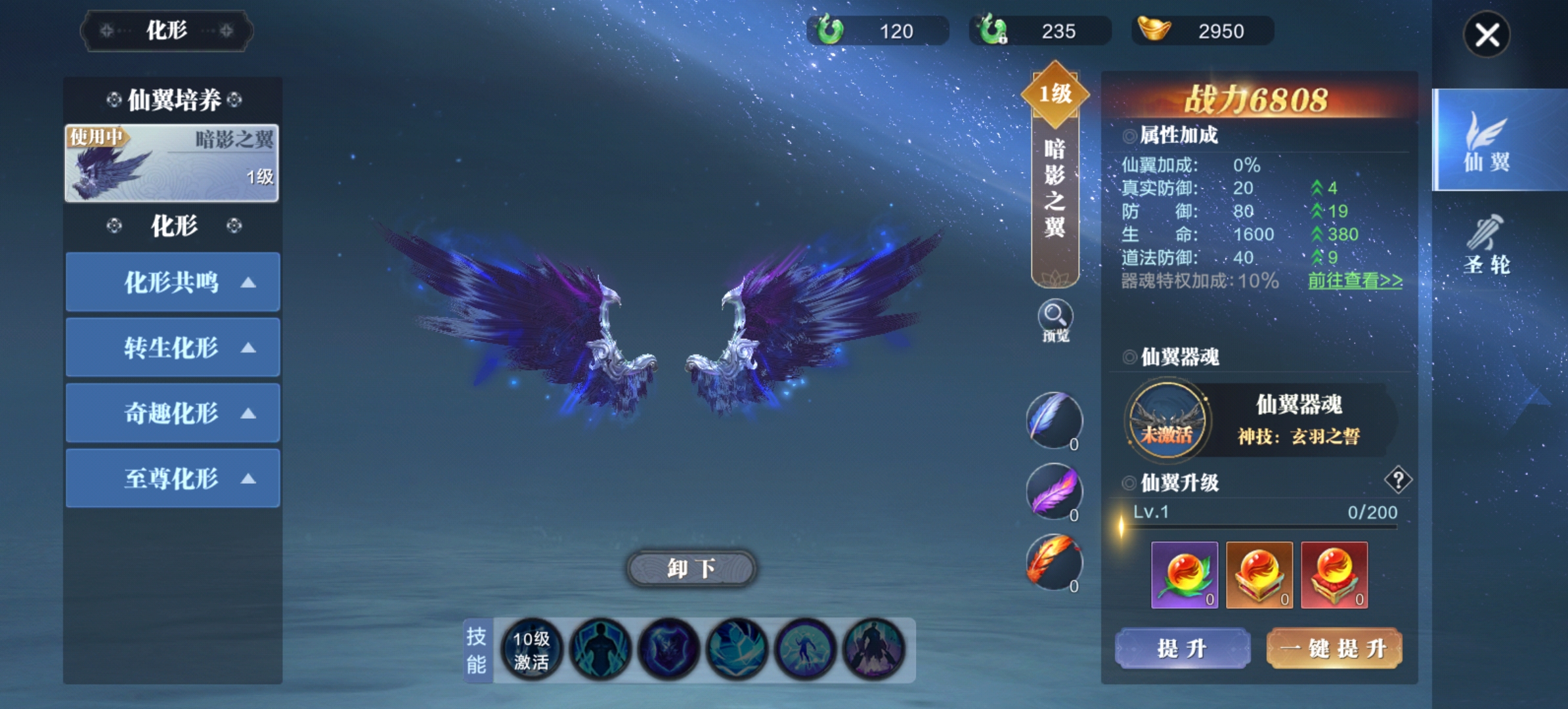 升级化形可获得大量属性,还可以解锁强力被动技能