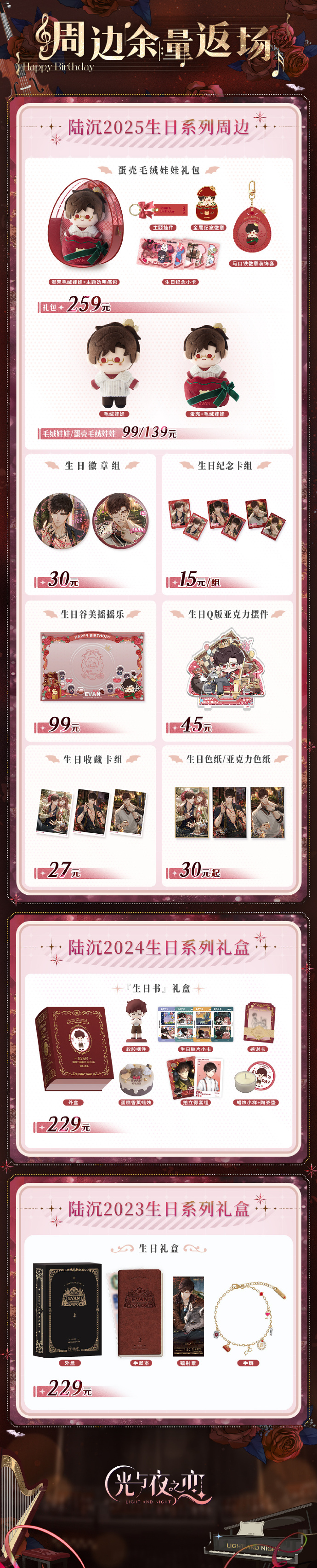 陆沉2026生日系列限时周边新品,陆沉2025生日系列、陆沉2024生日礼盒和2023生日礼盒余量返场即将同时开启!