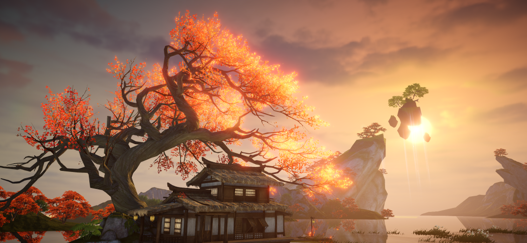 接下来是谕家私藏的绝美落日观景点——染心湖,夕阳染红湖畔,枫叶映红庭院,特别适合与结契共游!