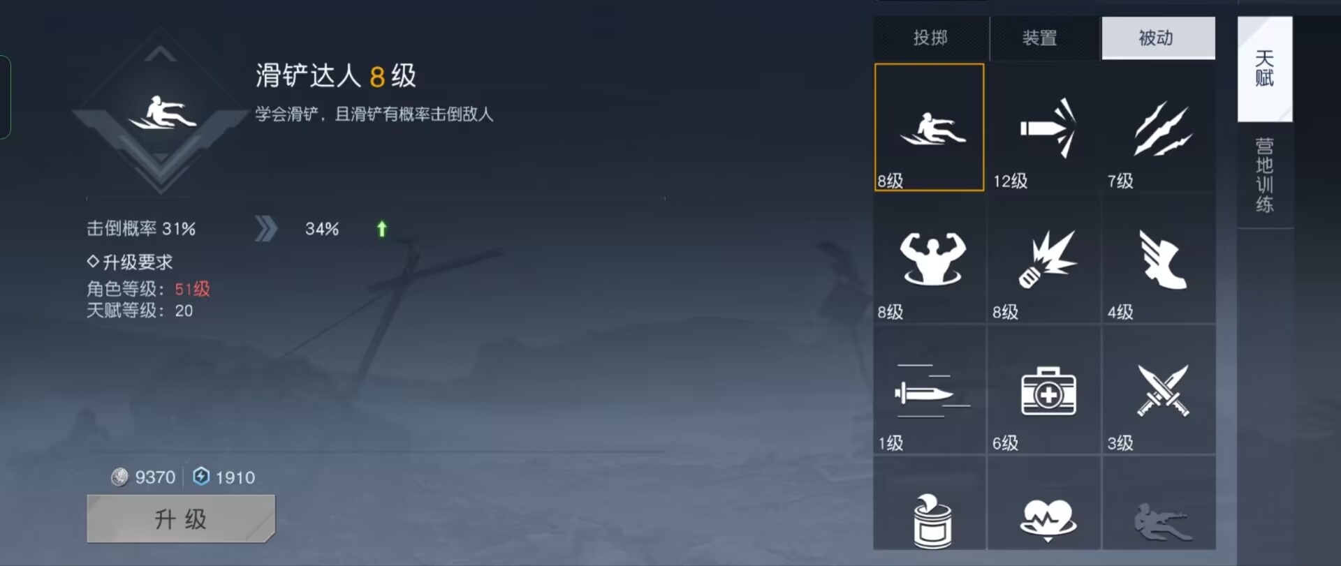 《黎明觉醒:生机》中,大部分的被动技能都是功能性的,解锁被动技能会给角色带来全新的能力,比如滑铲、近战击倒和击杀回复等等。而另外的技能会提供一些特殊的数值提升,比如穿甲、攻击附带流血和降低动作体力消耗等等。因为被动不需要使用,所以不会消耗战术耗材。