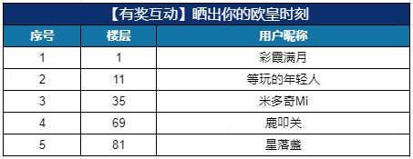 【有奖互动】晒出你的欧皇时刻活动现已开奖,以下是中奖名单~