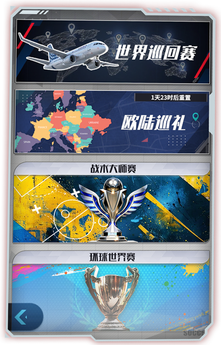 5、PVP玩法:战术大师赛、欧超联赛等;