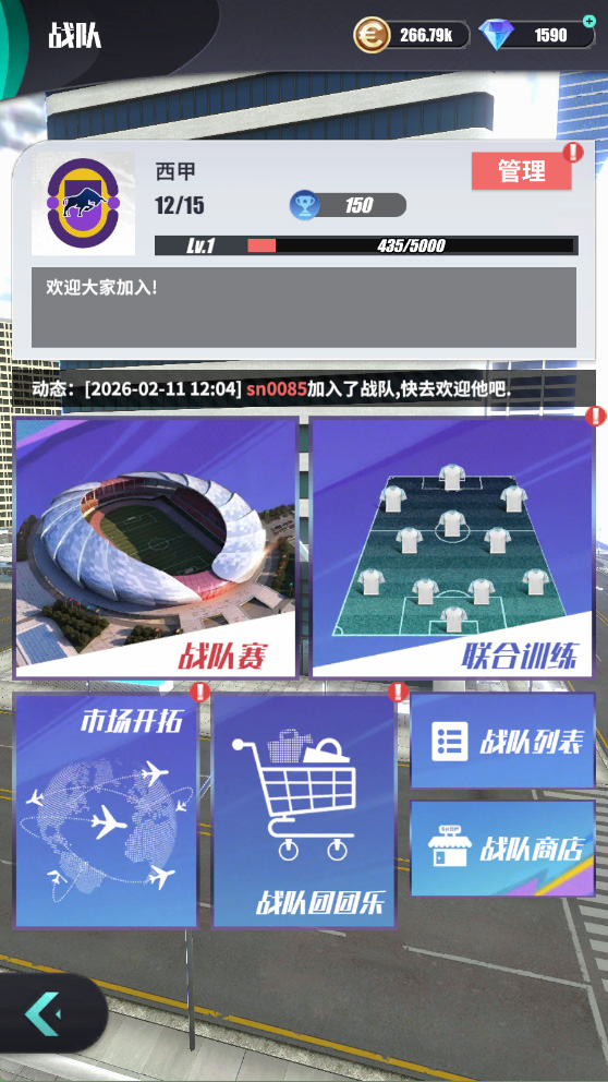 4、战队玩法:战队签到、战队技能搭配等你,完成活跃任务获得战队币可前往战队商店兑换稀有道具;