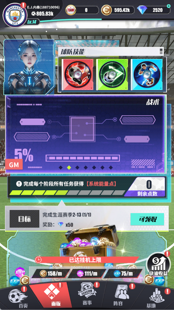 玩家可以通过生涯赛也可以获得一定的球员经验,同时挂机也会获得欧元,球员经验等资源,通过面板可领取收益。当然还可以选择购买活动礼包来快速获取大量挂机资源收益。这些对球员升级会带来很大的帮助。