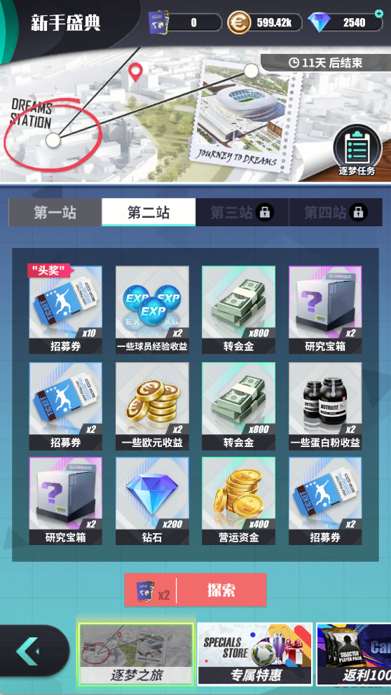 其次是逐梦之旅,完成逐梦任务后可以获得逐梦机票。玩家可以使用逐梦机票探索来获得奖励,当获得头奖后,即可开放下一站。