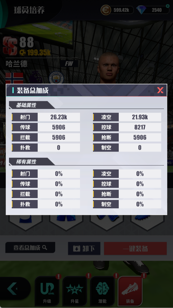 球员装备作为另一个首发版本新玩法,对战力提升的帮助也很可观。每个章节生涯结束后都可获得装备碎片随机包。目前游戏中的装备品质分为:白,绿,蓝,紫,金,红。品质越高的装备,所带来的属性加成也就越多。不同位置上的球员所能使用的装备也各不相同。