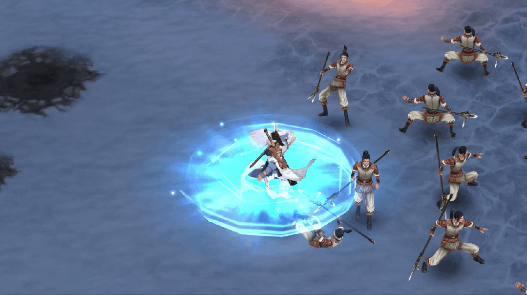 昆仑·风霆在释放该技能时,会产生持续一定时间的大范围剑阵,增加人物减伤、免疫控制,剑阵不再造成伤害。