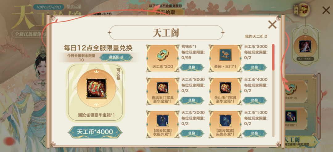 天工币可用于天工阁兑换各种珍稀外观、宠物等,少侠们可以根据喜好进行兑换~