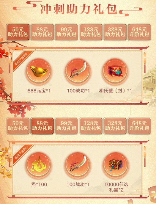 除此之外,战境冲刺礼包也已开放,内含多个档位助力资源礼包,少侠们可根据自身需求进行购买,提升实力快人一步!