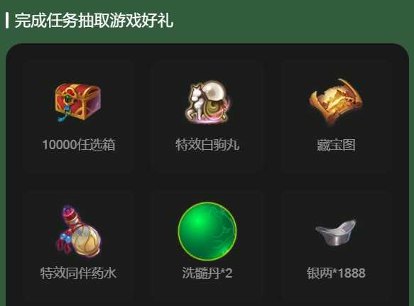 除了以上活动外,少侠还可以点击下方传送门完成相关任务获取抽奖机会,必得游戏奖励一份!