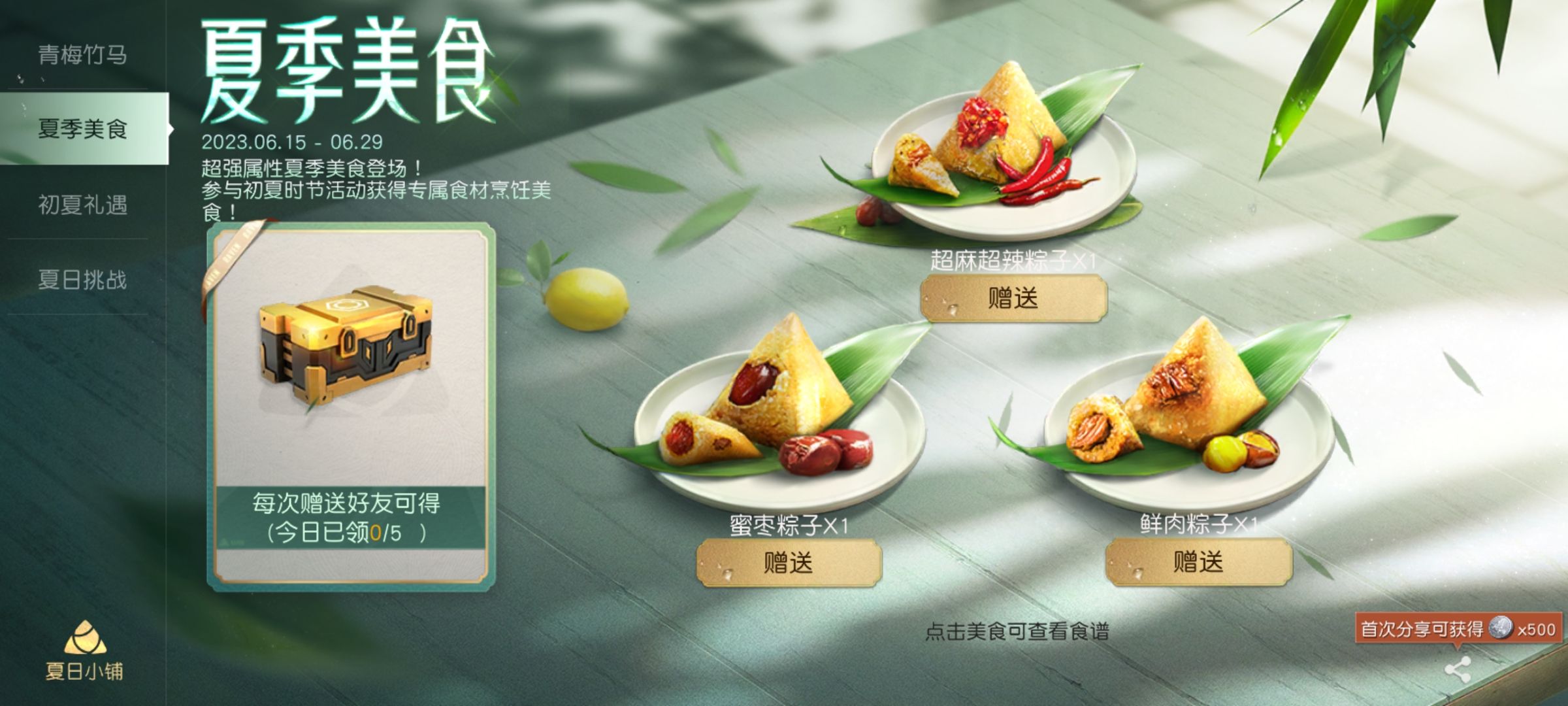 可以通过游戏送的食材做粽子的~还可以在夏日小铺兑换物品的,我不允许你们错过DIY粽子的机会,快来行动起来吧!