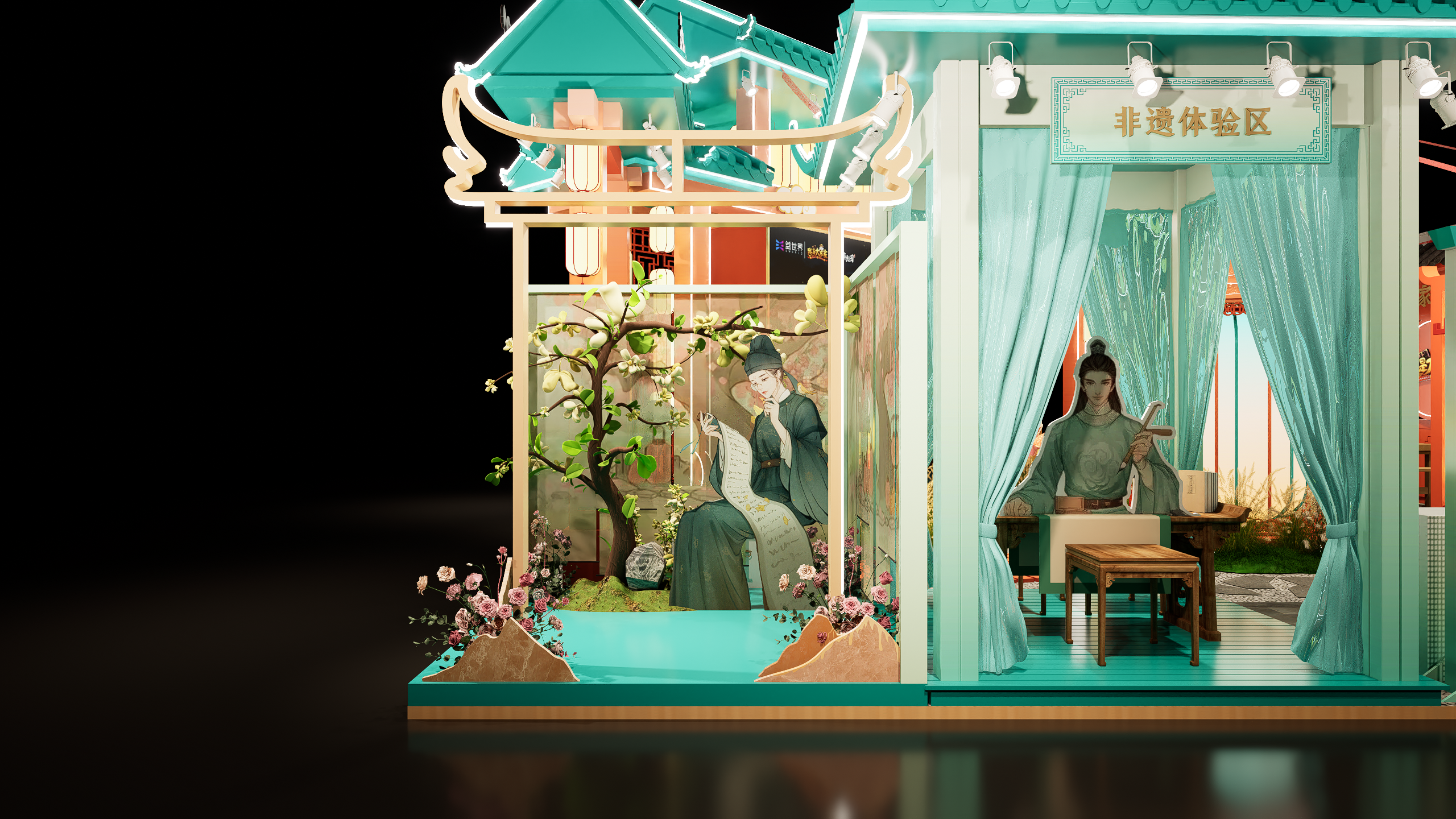 本次展台设计以“益城月下,庙趣共享”为主题,《这城有良田》区域以雅致庭院场景打造高级松弛感,玩家可以化身城主过上有城有田的休闲生活。