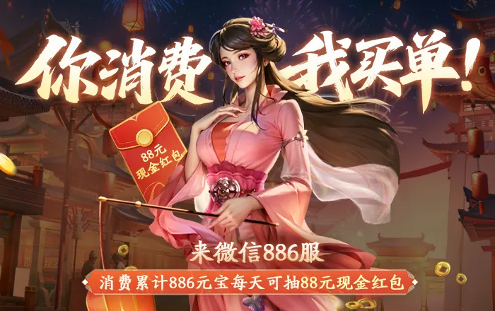 不仅如此,在新服消费也能赢好运。在微信886服、887服或888服累计消费满888元宝,即可参与每日抽奖,有机会赢取88元免单红包!每日都有机会,好运持续放送,这波福利不容错过,静候少侠前来触发!