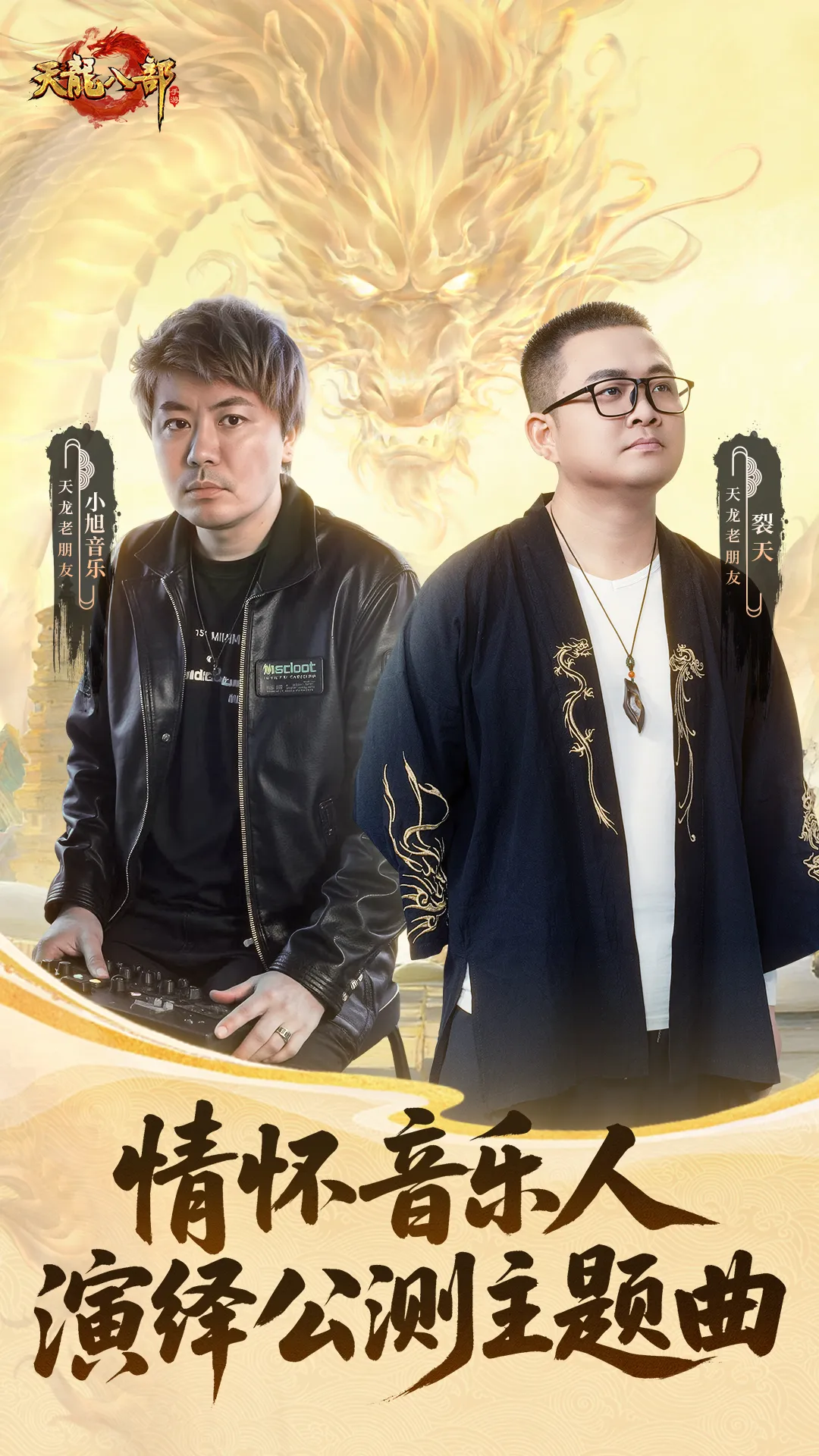 我们特别邀请到这两位与天龙缘系多年的老友:以音符铸就江湖经典的小旭音乐,与用歌声刻下岁月记忆的裂天。他们一个执笔写尽江湖意气,一个放歌唱透兄弟衷肠。此番再度联手,为轻松版共谱主题曲《共赴天龙战八荒》,不仅是一次创作,更是一场与所有少侠的久别重逢。