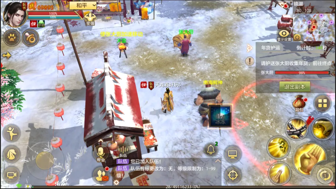 可谁曾想,行至镜湖之时,这批沉甸甸的年货竟被南海鳄神盯上,眼看新春将至,年货无法按时送达,张大厨急得团团转,万般无奈之下,只能向江湖中侠义心肠的少侠们紧急求助,盼各位出手相助,护年货周全、送年味到家!