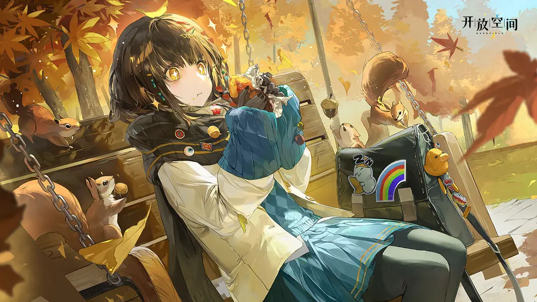 少女低头轻咬烤红薯,枫叶悄然落满裙摆,