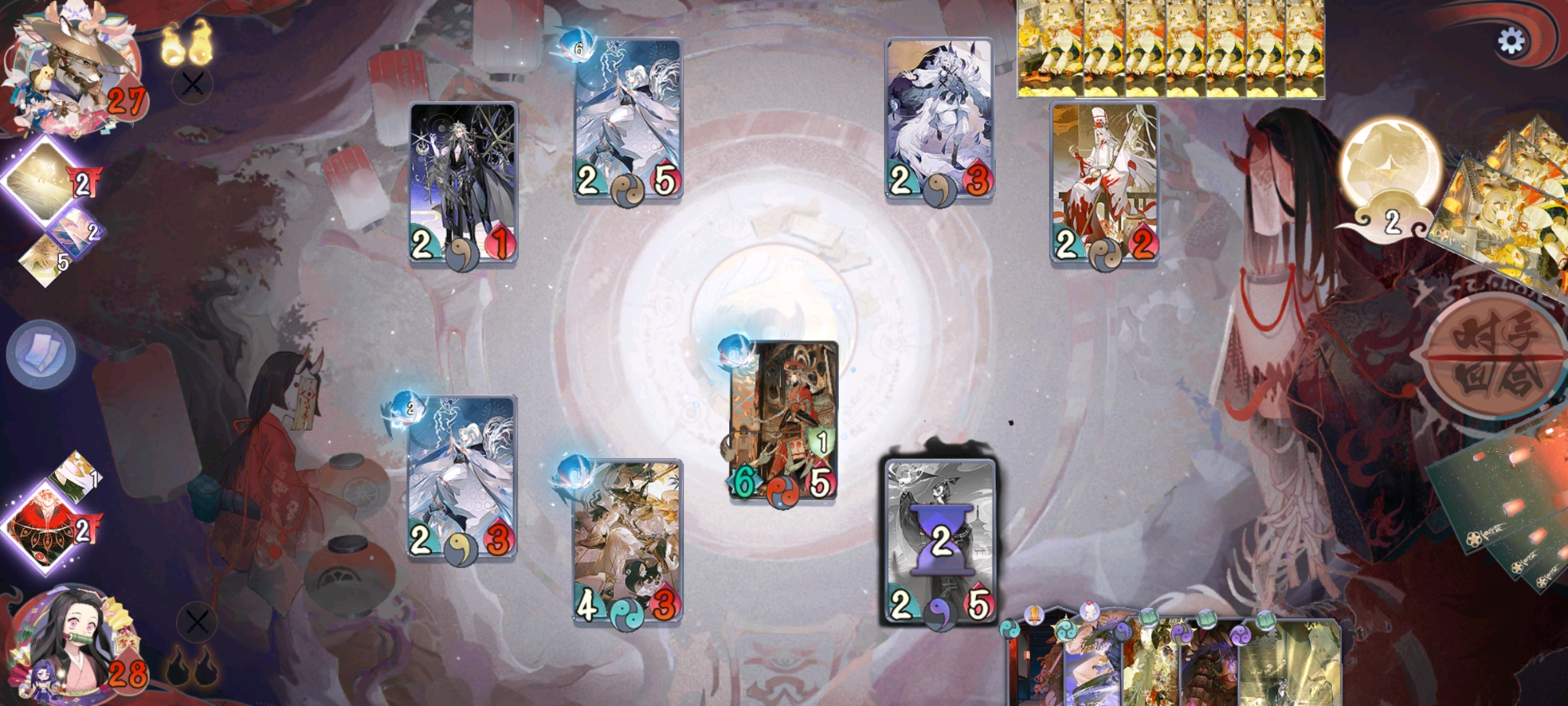 中期则需要注意琅琊子,打出觉醒以后每次出击或打出幻境牌都能够给对面稳定造成伤害,所以这里建议老哥们可以简单留一下坚守效果,方便琅琊子出击后换式神占场
