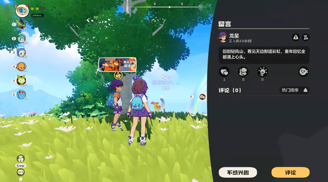 等到高涨的社区氛围回流至游戏内的日常探索,无处不在的“陪伴感”也让玩家的这份热情有所回应。好友直接在头顶显示的气泡对话、地图上随处可见的留言标记,如此功能设计,即使是单人跑图,玩家也能时刻感受到“朋友的存在”。