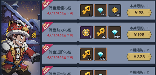 【超值礼包】中限时上架转盘礼包!海量道具材料供应!