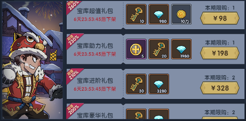 13、商城特惠:神之宝库特惠礼包超值礼包中限时上架神之宝库礼包,海量道具材料供应!