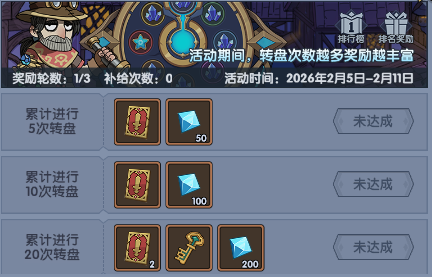 在活动结束时,协会将根据冒险家们在活动期间累积完成转盘次数进行排名,对排名靠前的冒险者额外放送高额奖励,排名越高奖励越豪华!