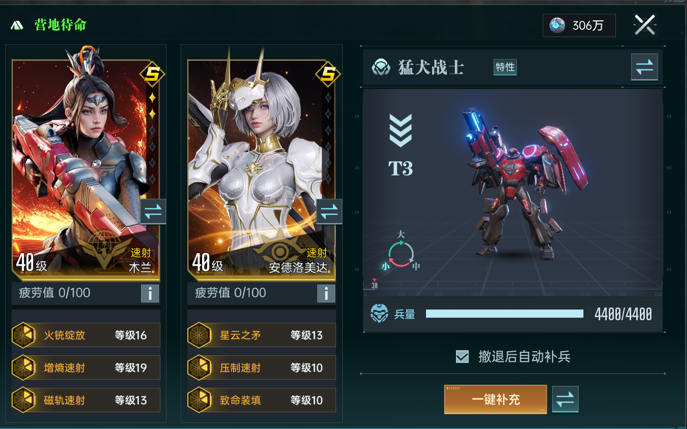 安德洛美达提升速射触发率,配合木兰无畏状态释放爆发技能。后续通过技能回复兵力、提高连击率,兼顾爆发与续航。