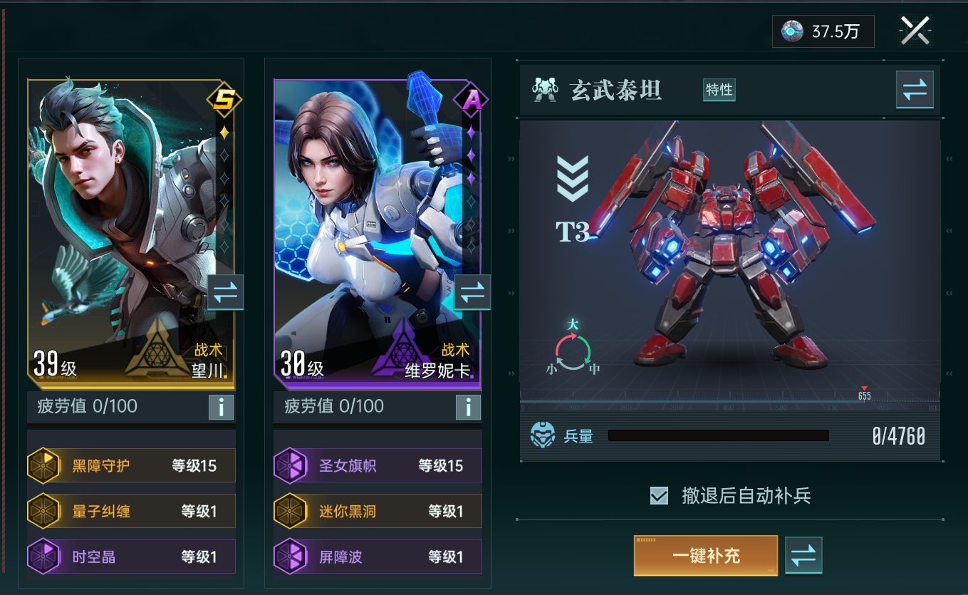 「数字孪生」、「屏障波」、「活性盾」、「时空晶」等强化护盾,「量子纠缠」或「迷你黑洞」嘲讽吸引火力。