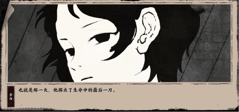 《末刀》主打“纯粹武侠”风格的基调,酣畅淋漓的水墨风格,恰好与快意恩仇的武侠故事相互照应。角色的立绘则是在水墨风格的基础上更加写实了一些,并结合表情和神态的刻画,让角色的性格一目了然,给予玩家一定代入感。此外,在诸多细节上,游戏也极力突出它的国风气质,比如结算界面的称号设计、死亡时的壮志“未酬”、还有令牌式的成就展示,大量的小设计与泛黄纸片般的色彩滤镜,都让复古的武侠时代感得到了更强的表现。