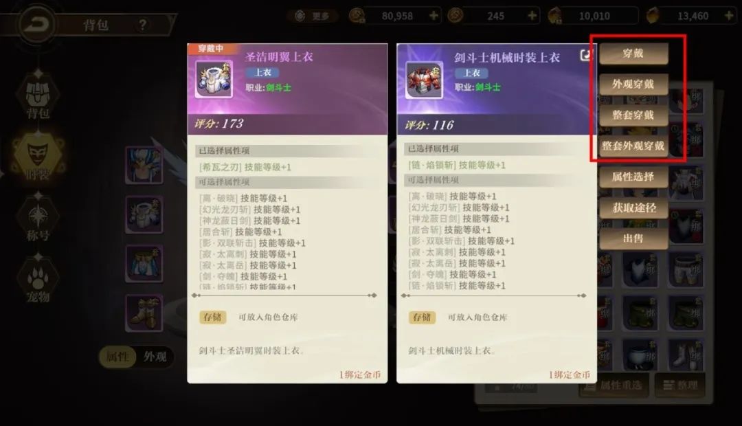 ▌在新版本中,我们将原有的时装功能拆分成「属性」「外观」2个功能。