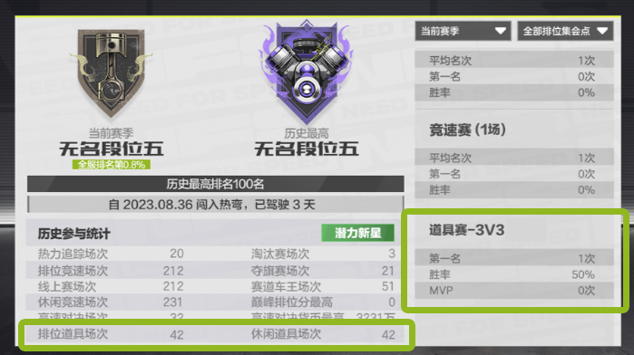 【排位道具赛】与【休闲道具赛】的历史参与场次、第一名次数、胜率、MVP次数等信息,都会在【个人空间】-【统计】页面中清晰罗列出来,记录每一次成长!