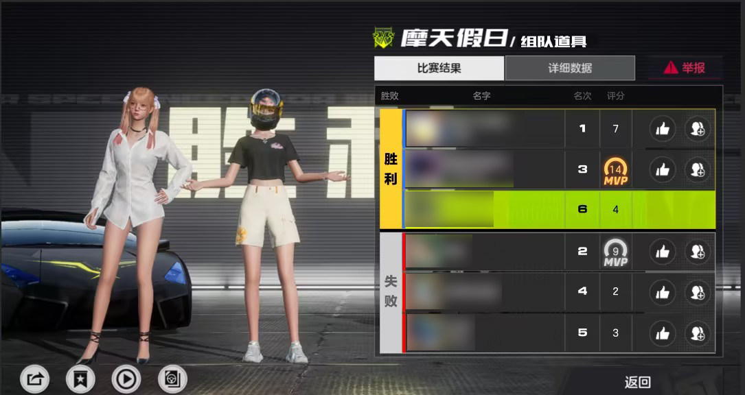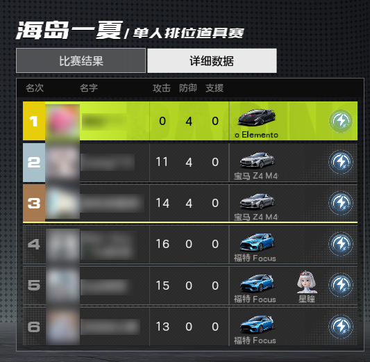 每场道具赛比赛结束后,街头赛车手们都能查看自己的攻击、防御、支援三项评分。