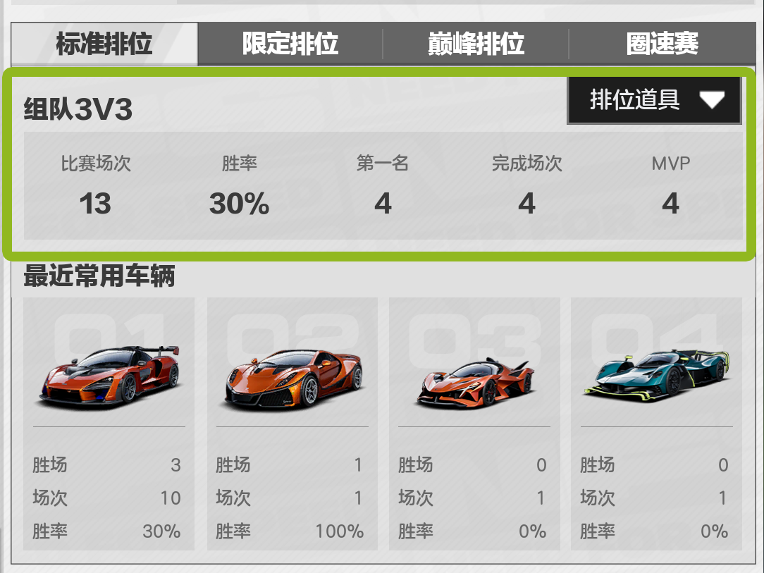 【个人空间】-【档案】新增【排位道具】页签选择,选择后,就能看懂组队3V3道具赛的战绩内容。
