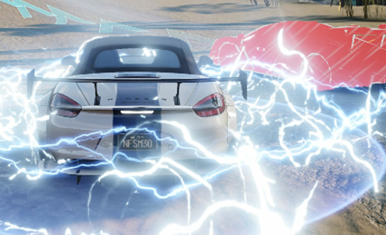 使用电磁脉冲,将锁定前方对手车辆,完成锁定后,对前方车辆造成减速效果。