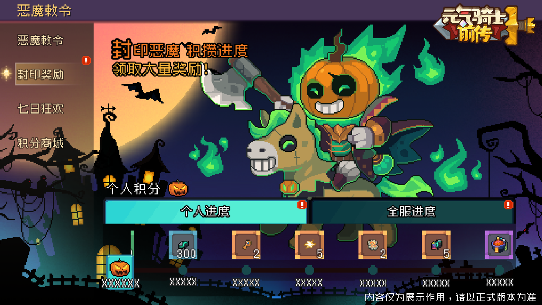 恶魔敕令关卡通关后,除获得奖励外,小骑士还会获得封印积分,积累封印积分后可获得进度奖励。
