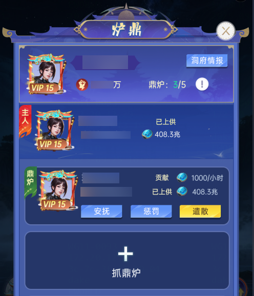 每个炉鼎有一个主人位,和3个鼎炉位。