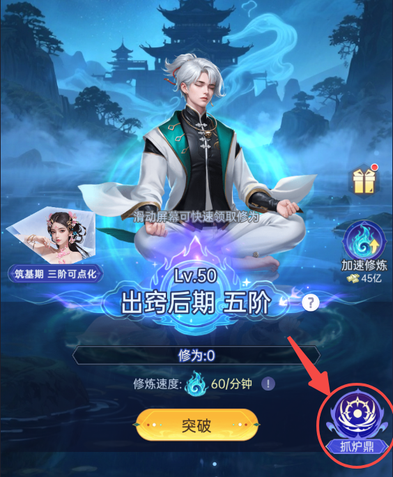 “修行”界面新增【抓炉鼎】功能