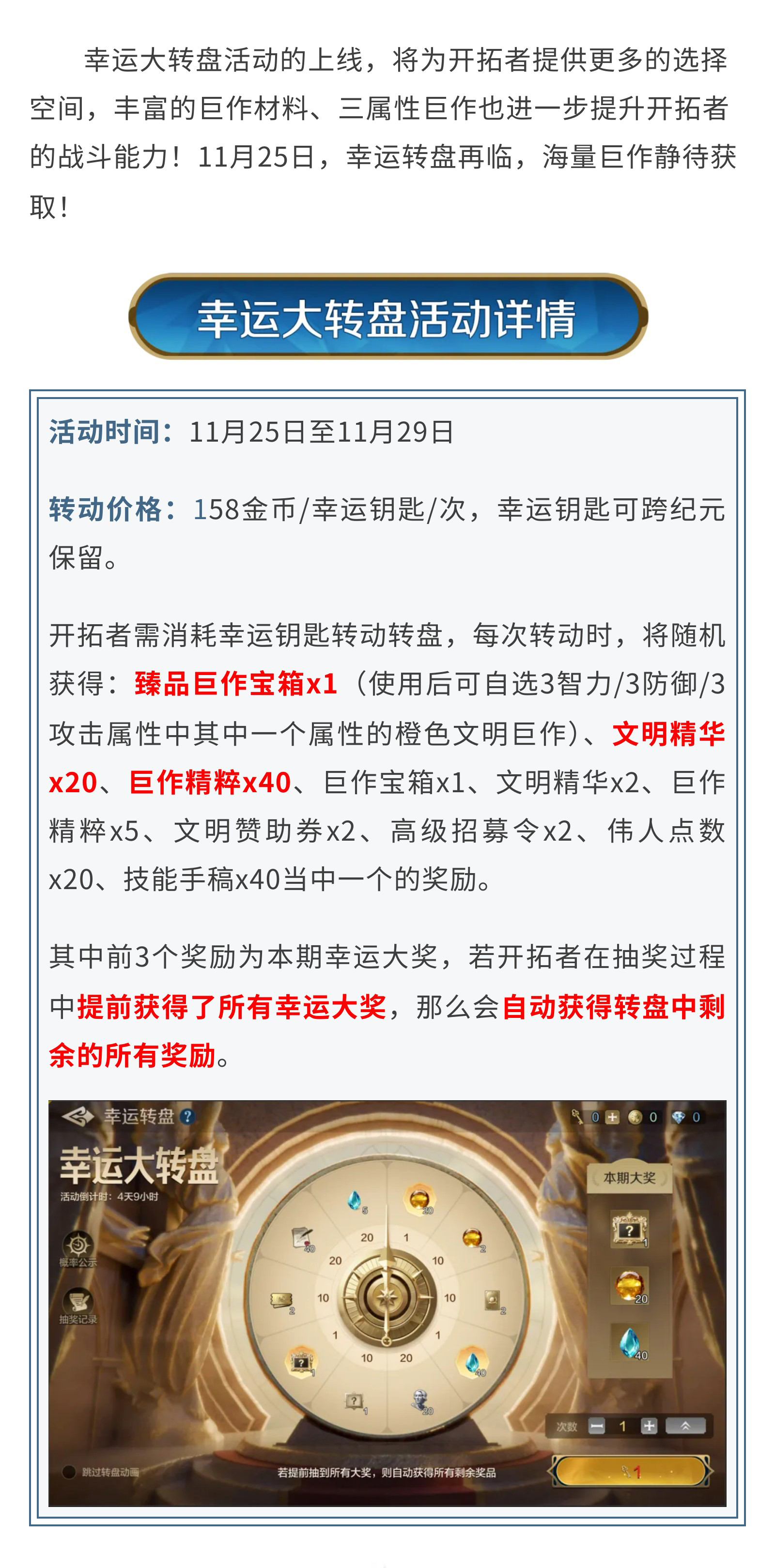 新活动资讯丨幸运转盘限时重启,海量巨作材料抱回家!