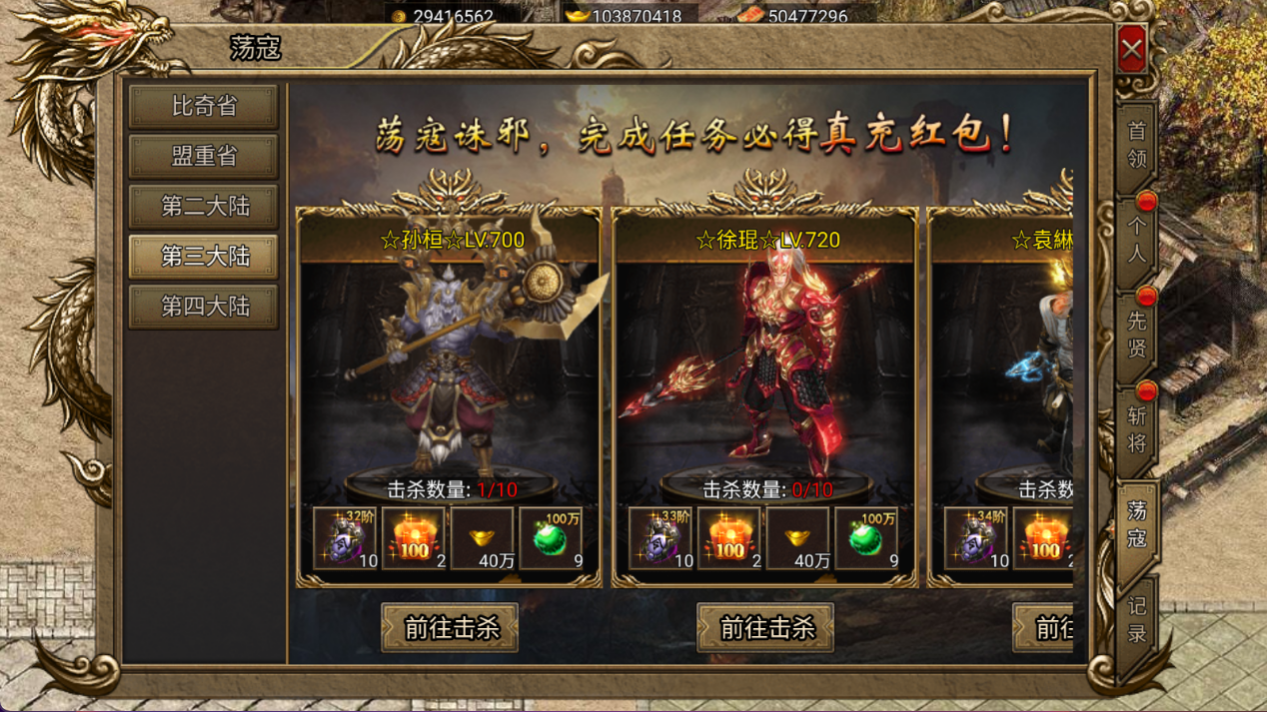 通过荡寇诛邪,可以获得大量经验丹、真充红包。