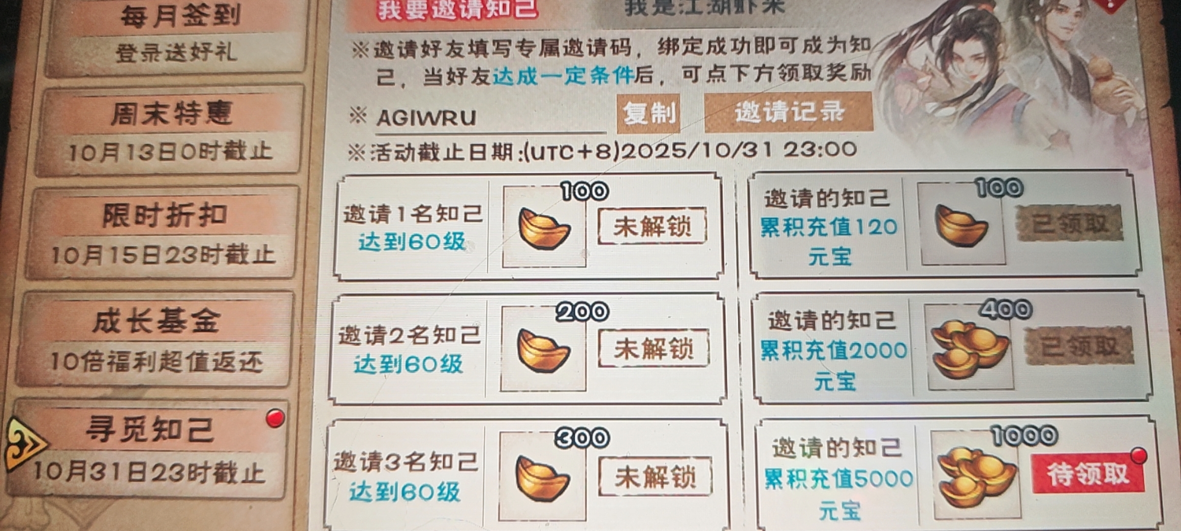 7,点开游戏右上角-活动-寻觅知己-填我的邀请码: